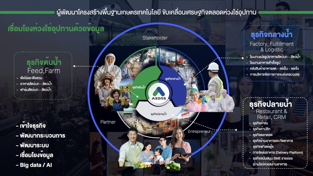 จาก CPF IT ถึงเวลาแล้วที่องค์ความรู้ที่สะสมมากว่า 40 ปี จะเปลี่ยนการเกษตรที่ใช้ภูมิปัญญาผสมโชคชะตาจากลมฟ้า อากาศ ให้กลายเป็นเกษตรที่เก็บรายละเอียด รู้ทิศทางตลาด รู้วิธีลดความเสี่ยง ต้นทุนที่สมเหตุสมผล เริ่มด้วยการเปลี่ยนชื่อเป็น AXONS ที่เป็นชื่อเดียวกับระบบเซลล์ประสาทที่ใช้เชื่อมระบบในร่างกาย เสมือนการนำเทคโนโลยีมาเชื่อมกับการเกษตร