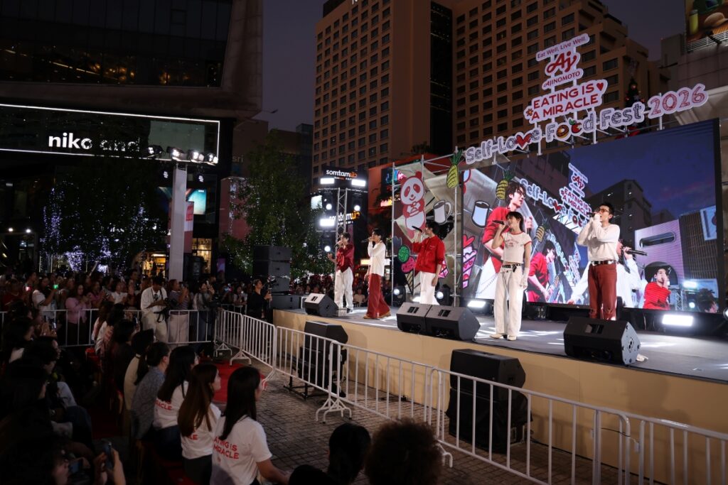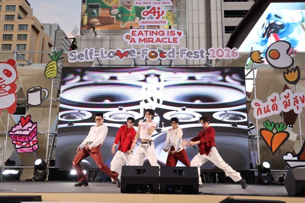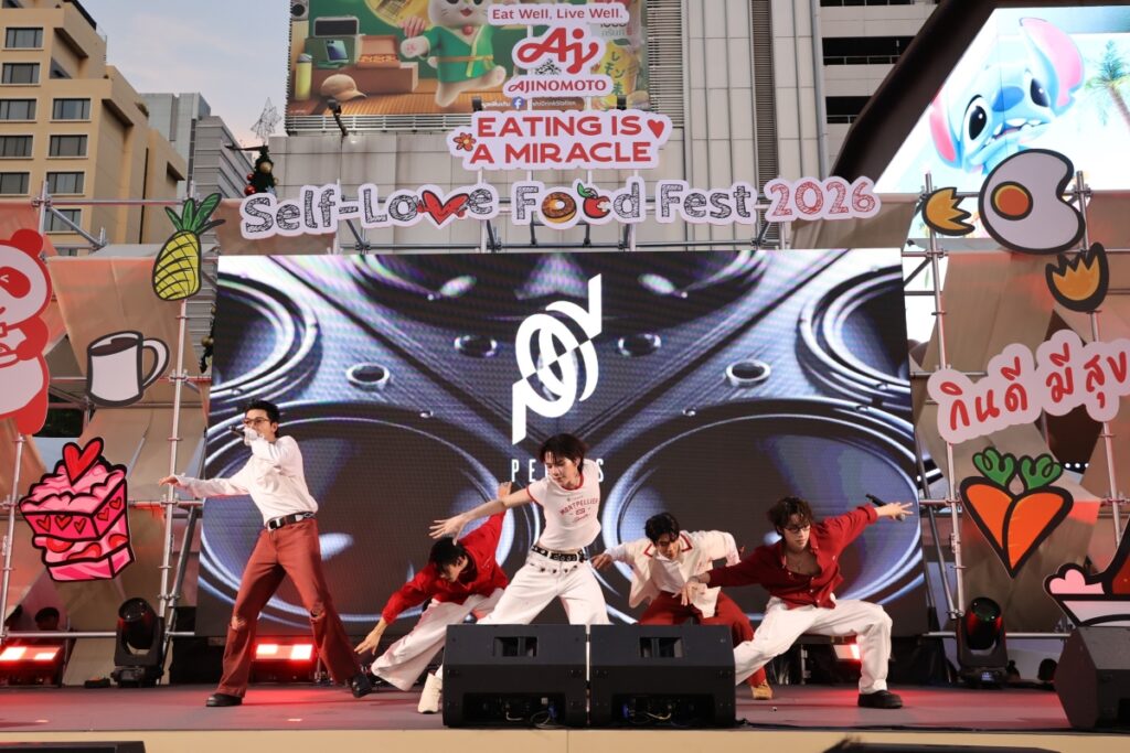 ลานสยามร้อนแรงขึ้นทันตา! PERSES (เพอร์เซส) บอยกรุ๊ปสุดฮอต ขึ้นเวทีปล่อยพลังโชว์แบบไม่มีกั๊กในงานฟู้ดเฟสเพื่อคนรักตัวเองครั้งใหญ่ด้วยแนวคิดกินดีมีสุขของอายิโนะโมะโต๊ะ (ประเทศไทย) กับงาน “Eating is a Miracle Self-Love Food Fest” ที่รวมทั้งความอร่อย ความสนุก และช่วงเวลาสบายใจไว้ในพื้นที่เดียว งานนี้ไม่ได้มีดีแค่เสียงเพลงบนเวที แต่ยังชวนสายกินออกเดินตะลุยร้านดังจาก LINE MAN Wongnai กว่า 20 ร้าน พร้อมกิจกรรมฮีลใจหลากหลายที่ชวนทุกคนมาพักใจแบบไม่ต้องคิดเยอะตลอดสามวันเต็ม โดยบนเวที PERSES ก็ไม่ทำให้แฟน ๆ ผิดหวัง จัดเต็มทั้งโชว์เพลงฮิตและกิจกรรมสนุก ๆ บนเวที ตั้งแต่เกมตกแต่งหน้าเมนูคอมฟอร์ตฮีลใจไฮไลต์ของงาน ไปจนถึงโมเมนต์ปิดท้ายที่ชวนแฟนคลับโฟกัสการรักตัวเองแบบง่าย ๆ แค่เริ่มจากมื้ออร่อยที่สบายใจ คนรอบข้างที่ใช่ และบรรยากาศที่ทำให้ใจผ่อนคลาย งานนี้ยังได้เชฟคนดังอย่าง เชฟลัท – รภัสสรณ์ จิรจุรีย์ชัย จากมาสเตอร์เชฟไทยแลนด์ ซีซัน 2 นำเมนูคอมฟอร์ตฟู้ดจานคุ้นเคยมาตีความใหม่ ในบูธ ‘ร้านอาหารตาม (ใจ) สั่ง’ พร้อมเสิร์ฟแบบเอ็กซ์คลูซีฟเฉพาะงานนี้เท่านั้น