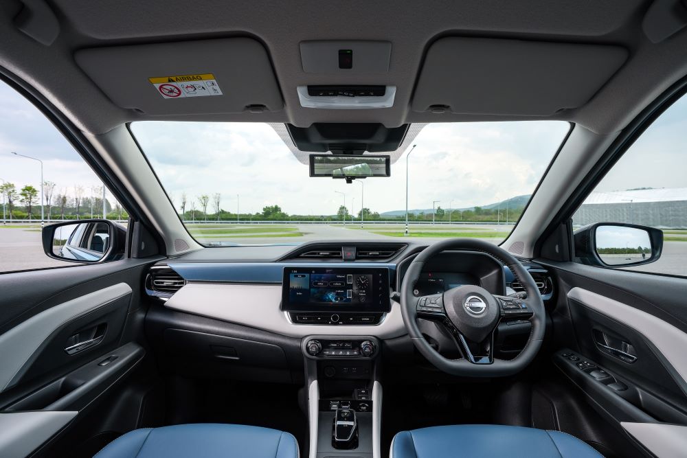 ห้องโดยสารดีไซน์ใหม่ ซึ่งไม่เพียงให้บรรยากาศทันสมัย แต่ยังช่วยให้ใช้งานได้ง่าย จุดเด่นภายในตัวรถ อยู่ที่ Audio Display หน้าจอแสดงผลดิจิทัลความละเอียดสูงขนาด 12.3 นิ้ว และ หน้าจอ TFT ขนาด 7 นิ้ว พร้อมมาตรวัดความเร็วดิจิทัล เพิ่มความทันสมัย อ่านข้อมูลสำคัญได้สะดวก รวดเร็ว และชัดเจน พร้อมทั้งจัดการระบบอินโฟเทนเมนต์ NissanConnect ได้ง่ายดายเพื่อการเชื่อมต่อที่ราบรื่นแบบไร้สายกับ Apple CarPlay และ Android Auto หรือเชื่อมต่อผ่านสาย USB หรือบลูทูธได้สะดวก นอกจากนี้ ผู้ขับขี่ยังสามารถใช้แอป เลือกเพลง และระบบนำทางได้อย่างสะดวกในทุกเส้นทาง รวมทั้งยังมีที่ชาร์จไร้สาย เพื่อให้สามารถเชื่อมต่อได้ตลอดการเดินทาง