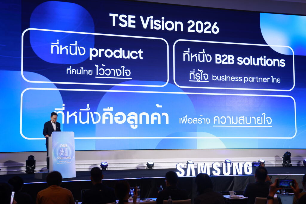 ซัมซุง ประกาศเดินหน้าปี 2026 ด้วยวิสัยทัศน์ “Your Companion to AI Living” จากระดับโลกสู่ประเทศไทย ตอกย้ำบทบาท “ผู้บุกเบิก” ที่นำ AI สร้างประสบการณ์การใช้ชีวิตแก่ผู้บริโภค ด้วยการนิยามว่า AI ไม่ใช่แค่เทคโนโลยีแต่ คือ Companion หรือ “เพื่อนคู่คิด” ที่เข้าใจผู้ใช้ เรียนรู้บริบท และทำงานร่วมกับอุปกรณ์ทั้งหมดในชีวิตประจำวัน เพื่อยกระดับความสะดวก ประสิทธิภาพ และความคุ้มค่า ผ่าน AI Ecosystem ที่เชื่อมต่อทุกอย่างให้เป็นระบบเดียว ตั้งแต่มือถือ จอแสดงผล เครื่องใช้ไฟฟ้าภายในบ้าน ไปจนถึงบริการและโซลูชันสำหรับภาคธุรกิจอย่างไร้รอยต่อ