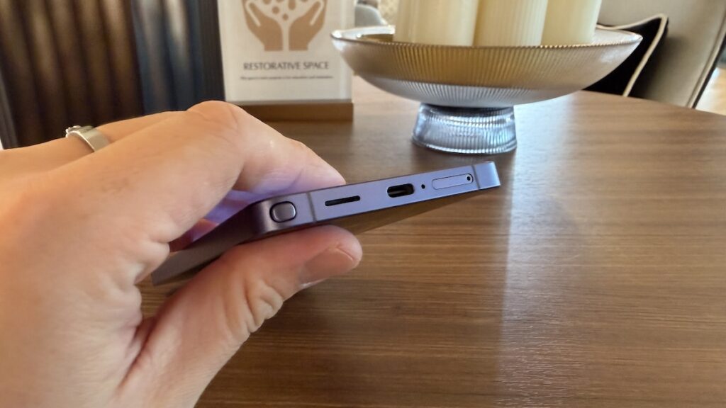 เรื่องแรกคือ ตัวเครื่องบางที่สุด เบาที่สุด ตั้งแต่ยุค Galaxy Note ถูกยุบไปรวมกับ Galaxy S เพราะความหนา 7.9 mm กับน้ำหนัก 214 กรัม ให้สัมผัสที่ดีที่สุดในการจับถือของ Galaxy S ทุกรุ่นจริงๆ แล้วถ้าให้เจาะจงกว่านั้น น้ำหนักของ iPhone 17 Pro Max ที่หนัก 231 กรัม ให้ความต่างในการจับถือที่รู้สึกได้ทันที แน่นอนว่า รอบนี้ Galaxy S26 Ultra เลิกใช้ไทเทเนียน แล้วกลับไปอลูมิเนียม แต่การบริหารน้ำหนักบนมือ ที่แสดงถึงการจัดวางเครื่อง ทำออกมาได้ดีมาก ๆ ขอให้ Samsung รักษาจุดนี้ให้ดี ๆ ที่สำคัญสุดคือ รอบนี้ สีเครื่องทุกเครื่อง สวยแบบไม่กังขาสักสี โดยเฉพาะสีดำ ที่เป็นสีที่ผมเลือกซื้อมือถือก่อน หลังจากดูแย่ใน S24/S25 มารอบนี้ ดำสวยแบบน่าใช้แบบยุค S21/S22/S23 ส่วนสีพิเศษทั้ง Silver Shadow กับ Pink Gold ก็ปรับเฉดจนลงตัวขึ้น ยิ่งสีขาวรอบนี้ เป็นครั้งแรกที่ขาวของ Samsung สูสีความสวยกับขาว iPhone ในความคิดผมได้ซะที